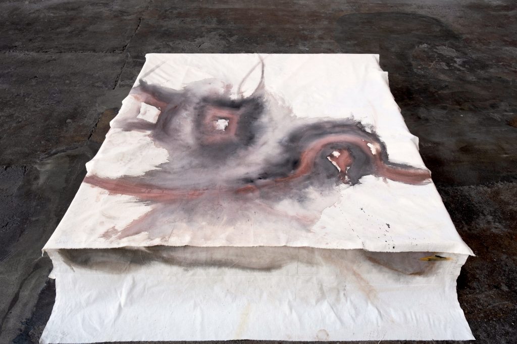 Gauze, pigments, acrylic on paper, 43 x 59 cm